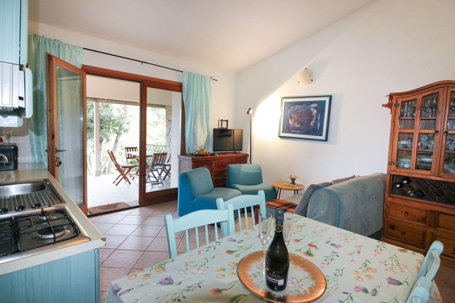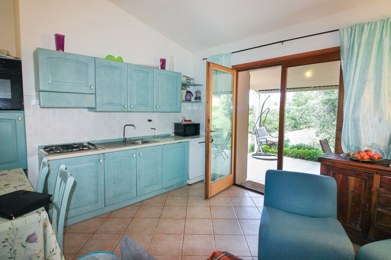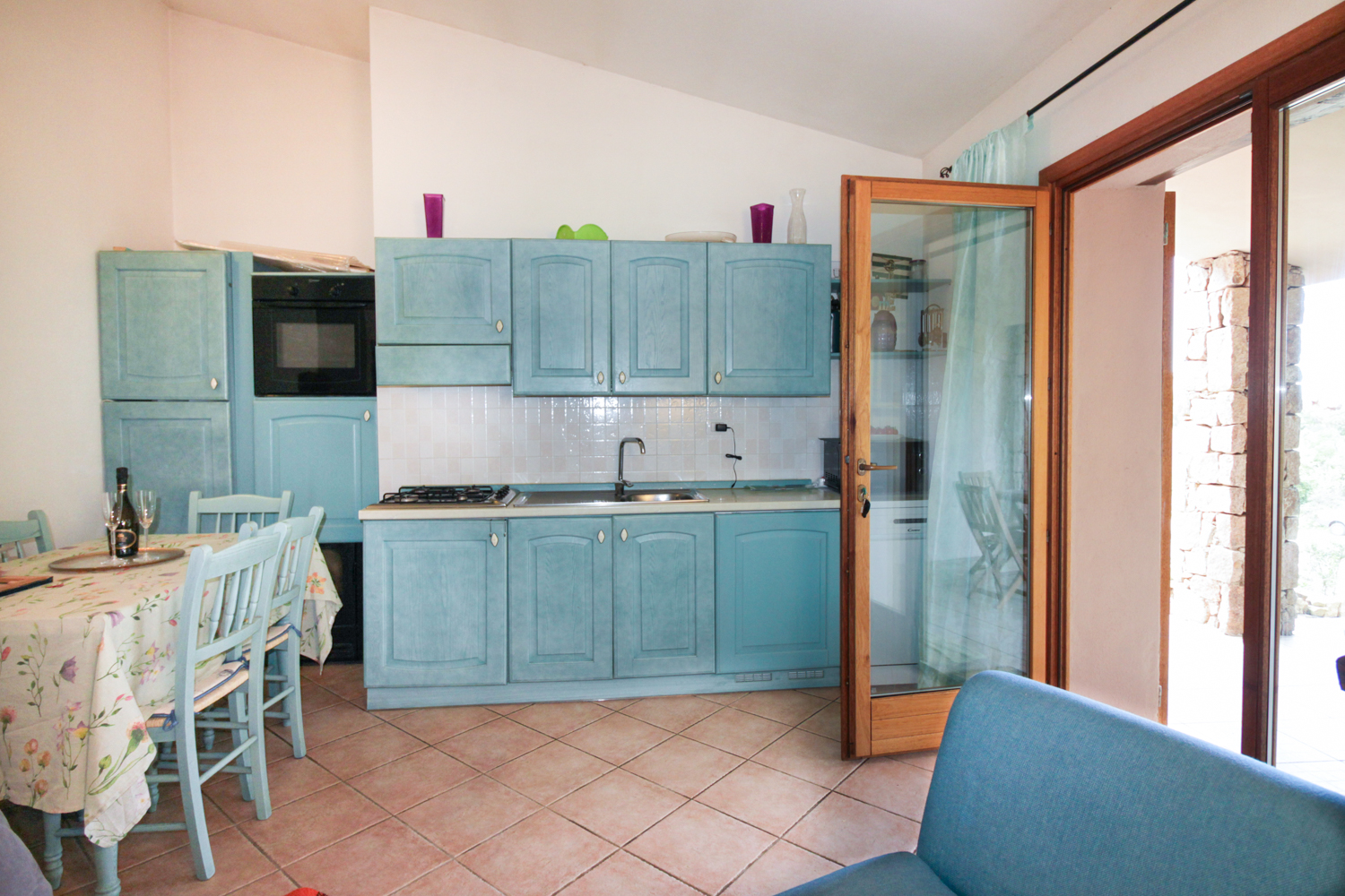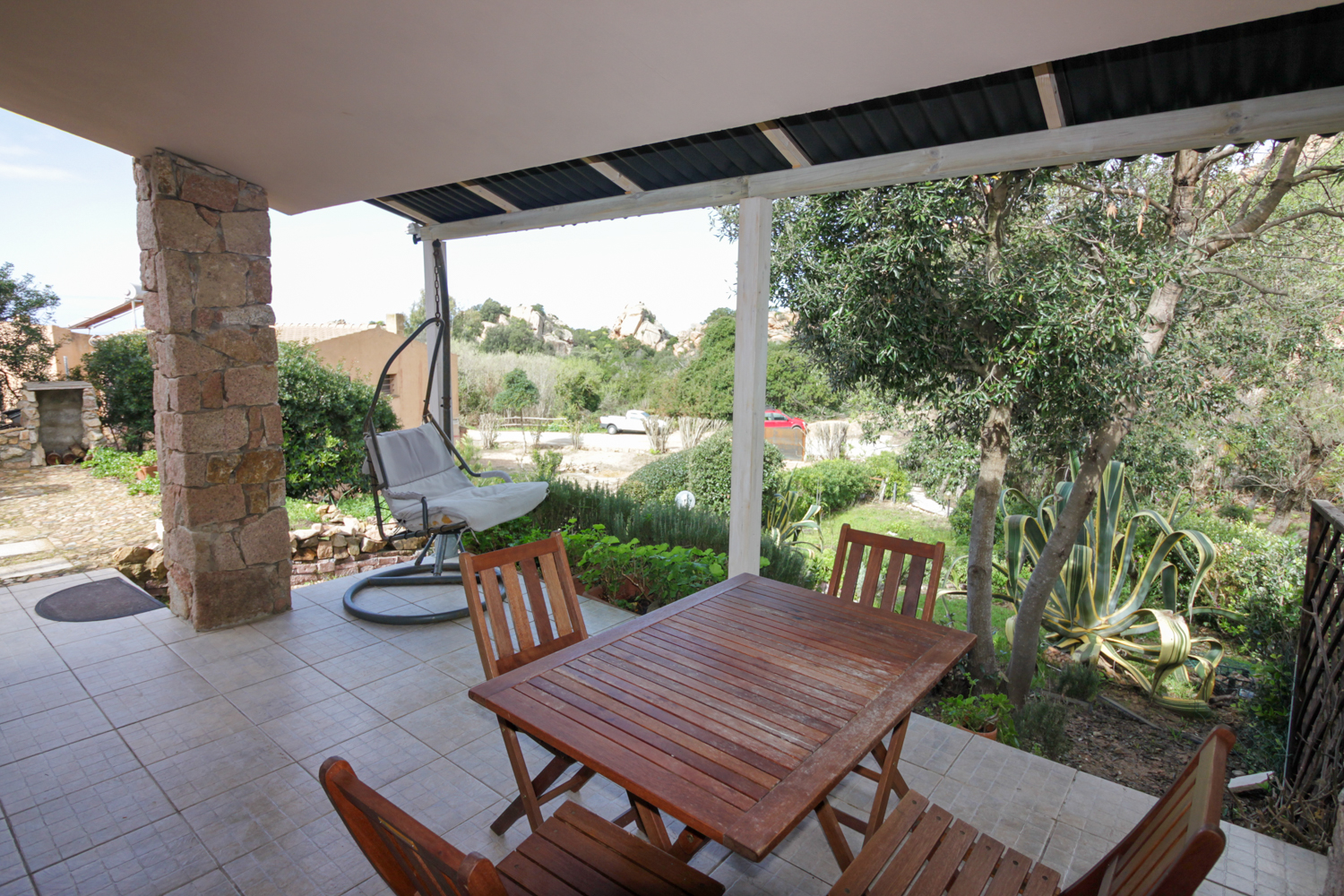De woning is volledig ingericht en instapklaar. Bij binnenkomst wordt u verwelkomd in een lichte woonruimte met open keuken, die naadloos overgaat in een overdekte veranda. Vanuit hier kijkt u uit op de tuin en de indrukwekkende rotsformaties die deze regio zo uniek maken. De veranda vormt een verlengstuk van de leefruimte en is perfect voor lange zomeravonden, diners in de buitenlucht of simpelweg genieten van de rust.