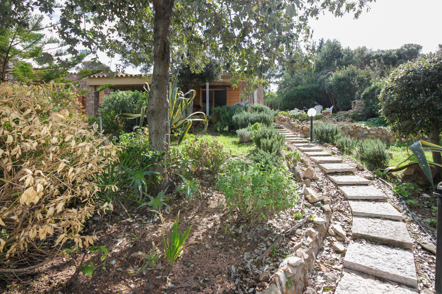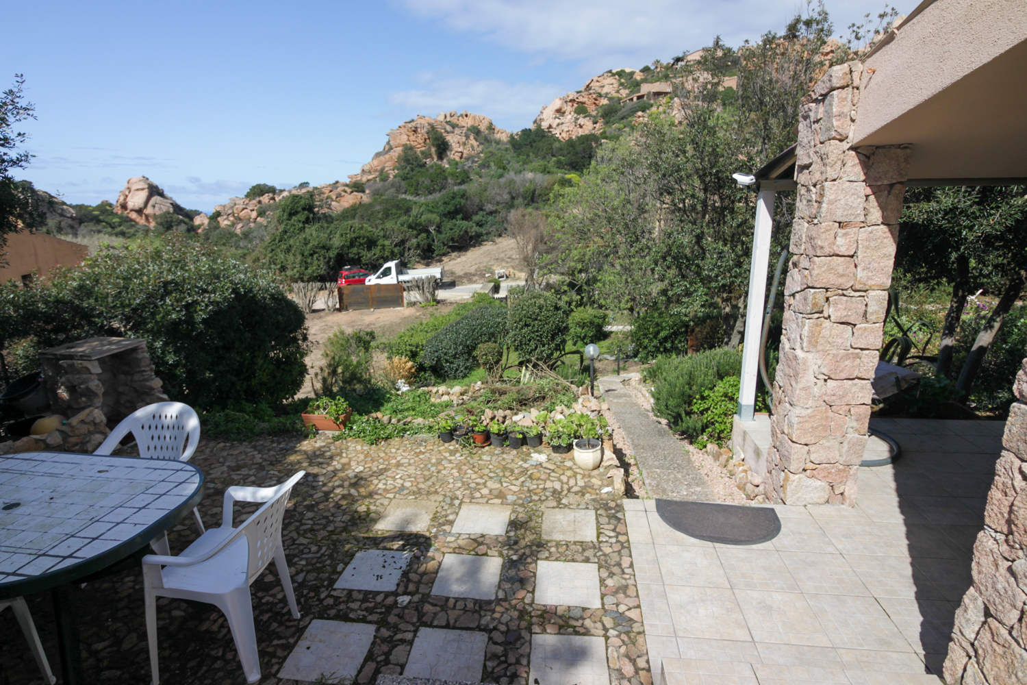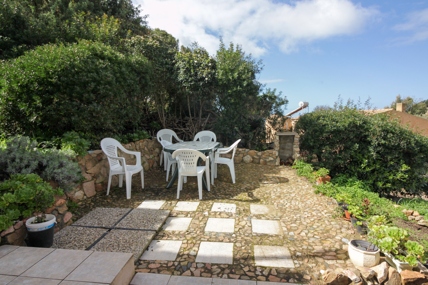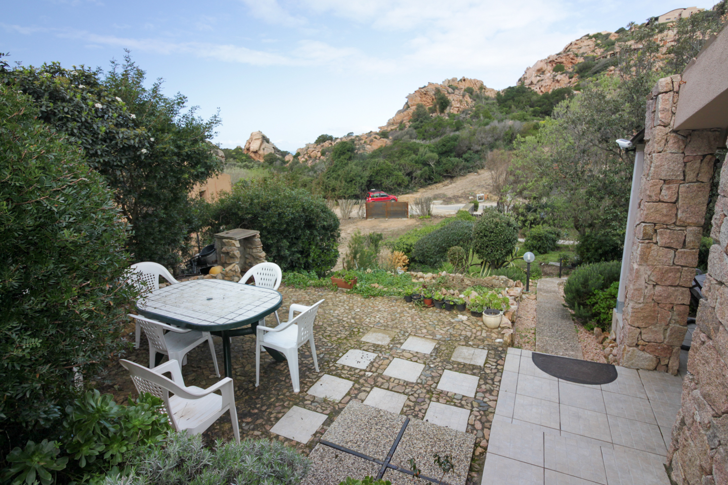 De buitenruimtes zijn zorgvuldig ontworpen om optimaal te genieten van het mediterrane klimaat. De tuin en veranda bieden meerdere plekken om te ontspannen, omringd door natuur en stilte. Een privé parkeerplaats maakt het geheel compleet.