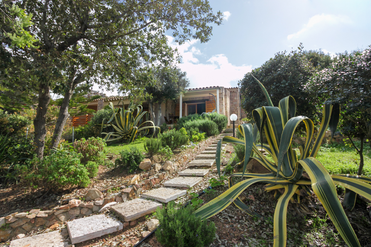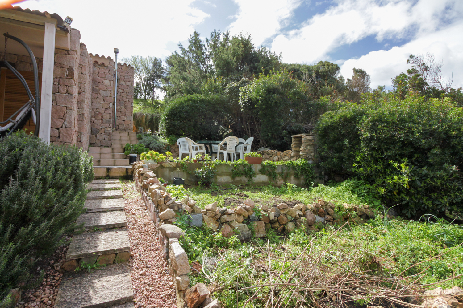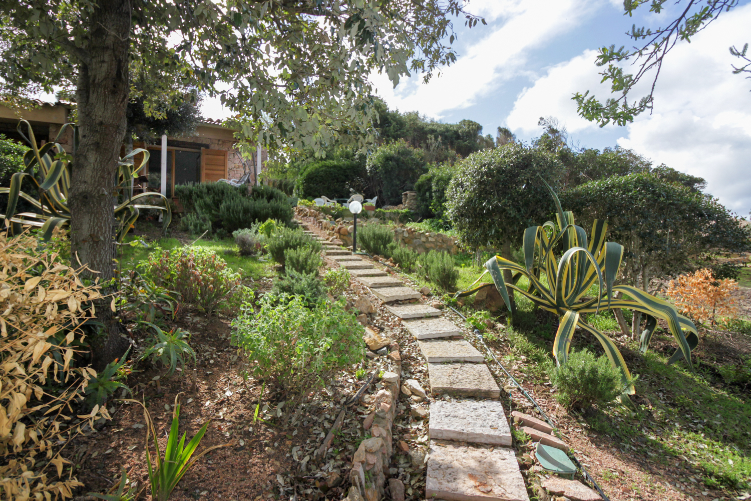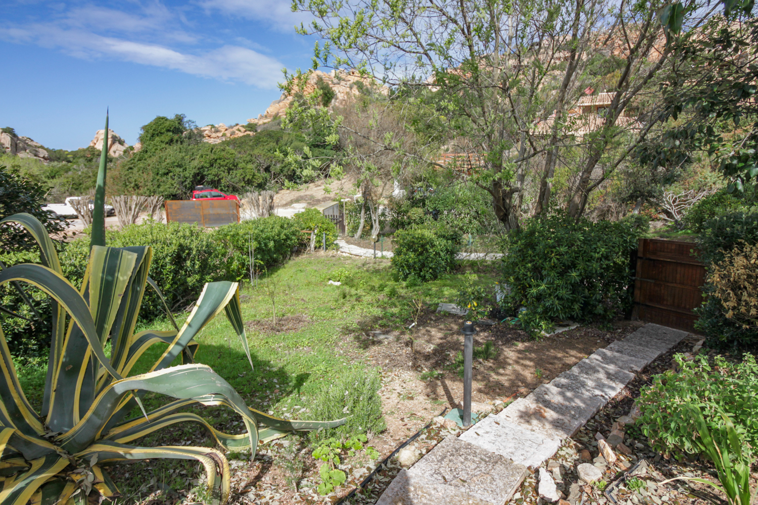 De buitenruimtes zijn zorgvuldig ontworpen om optimaal te genieten van het mediterrane klimaat. De tuin en veranda bieden meerdere plekken om te ontspannen, omringd door natuur en stilte. Een privé parkeerplaats maakt het geheel compleet.