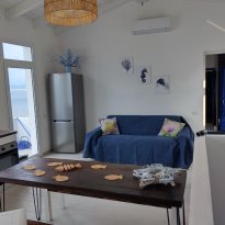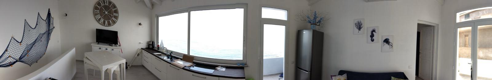 De woning is in 2024 volledig gerenoveerd en verkeert in staat van nieuwbouw. De lichte en luchtige interieurs zijn ontworpen om optimaal te profiteren van de unieke ligging aan zee. De woonkamer op de bovenverdieping, met witte zichtbare balken en een grote panoramische schuifpui, omlijst de zee als een levend schilderij. Ook de moderne keuken kijkt direct uit over het blauw van de Middellandse Zee, waardoor zelfs alledaagse momenten bijzonder worden.
