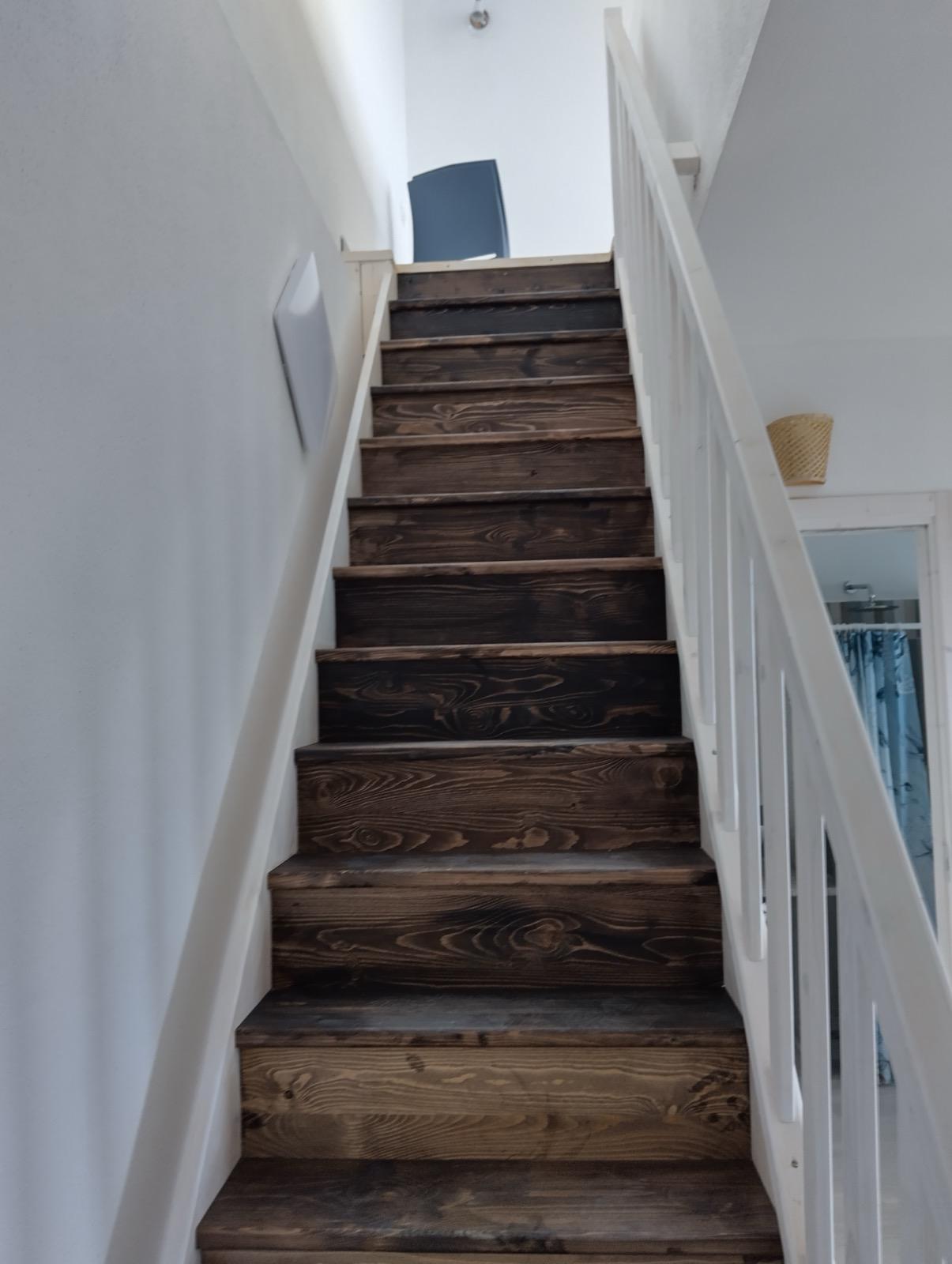 De slaapverdieping is verdeeld over twee niveaus en biedt comfort en privacy. Met twee ruime tweepersoonsslaapkamers en een extra kamer met stapelbed is deze woning ideaal voor gezinnen en gasten. De neutrale kleuren en minimalistische inrichting versterken het gevoel van rust en verbondenheid met de natuur.
