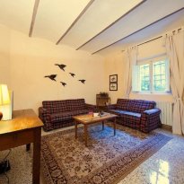 Het woonhuis is momenteel ingedeeld in twee appartementen maar de oorspronkelijke staat als een enkele woning is structureel nog aanwezig en dus eenvoudig terug te brengen. Een centrale entree, met trappenhuis bedient beidde units: Het eerste appartement, op de begane grond, bestaat uit living, gescheiden keuken, twee  2-persoons slaapkamers en 2 badkamers en een bergruimte. Op de bovenverdieping bevindt zich het tweede appartement met een living met open keuken en provisiekast, 3 2-persoons slaapkamers, een badkamer en een berging. Naast het woonhuis staat een uit baksteen opgetrokken 'fienile' met een vloeroppervlak van 50 m2. Op het terrein is een bovengronds zwembad geplaatst. Het huis is voorzien van Verwarming (gas), water, en electriciteit met gecertificeerde installaties.